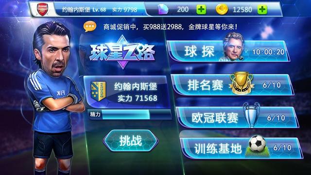 绿茵之巅是一款足球题材的体育竞技游戏,游戏中有一定的卡牌游戏影子,但是和卡牌游戏没有半毛钱的关系,作为FIFA授权的游戏,游戏中加入了很多球坛上经典角色,跨时代的巨星较量,你心目中的巨星是谁?是C罗、梅西、卡洛斯、伊布还是内马尔、苏亚雷斯等等,赶快打造自己的足球俱乐部吧。
