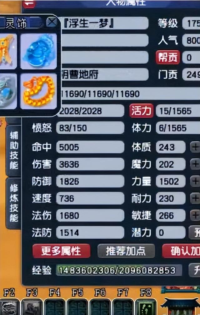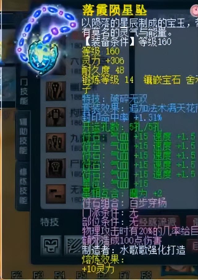 后排灵饰为140级佩饰和手镯,四气血双防御