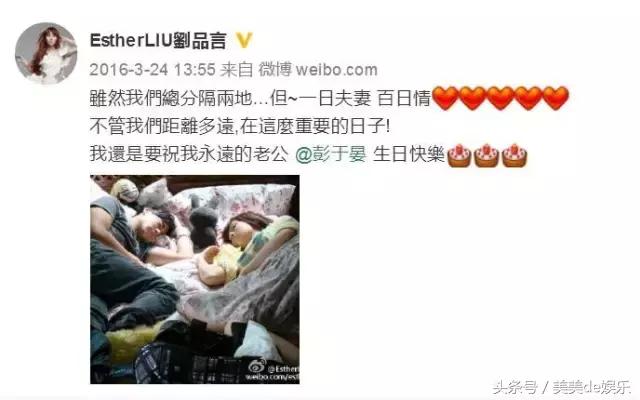 合作了三部戏的刘品言和彭于晏在生活里关系也是极好的,除了会探班彭于晏,还会在彭于晏生日,在微博上高调祝永远的老公生日快乐(当然是剧集里的老公啦,表想太多)