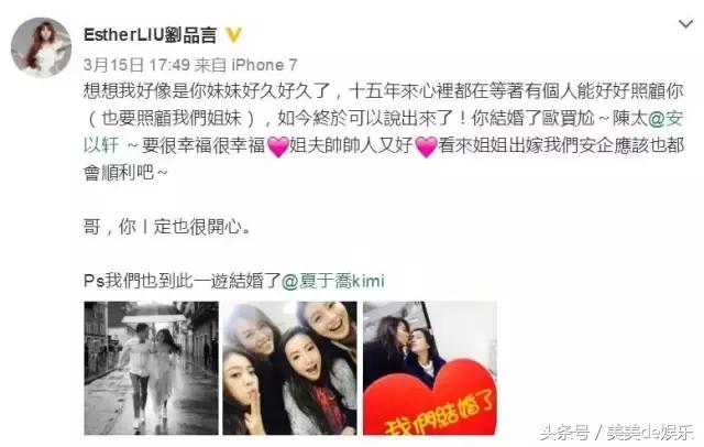 近日,在女神安以轩的伴娘团中惊现了阿奴刘品言。