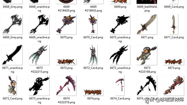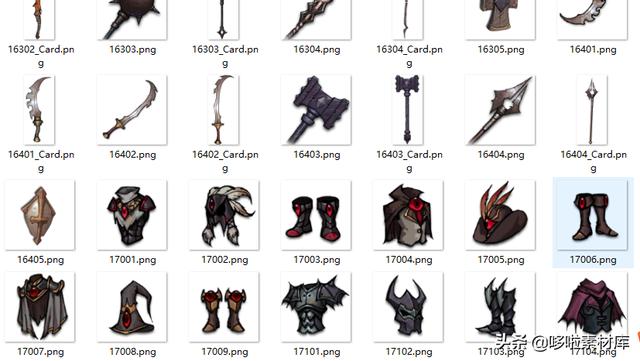今天给大家免费分享一套高清游戏装备素材,画风偏黑暗,风格独特,种类多样包括武器、衣服、护腕、鞋子、戒指、披风、头盔等有640+个装备。其中武器就有:手枪、锤、剑、刀、镰刀、弓、斧等应有尽有,是不可多得素材集合。