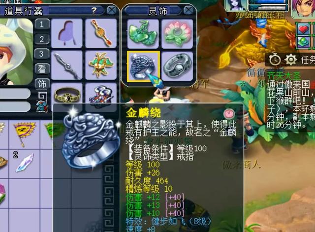 前排灵饰更加逆天,附加三属性相同的三伤害耳饰,附加四属性相同的四伤害戒指,全部都是点化了满级特效与满级宝石。