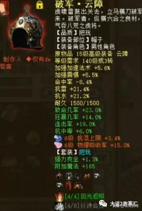 帽子是破军套装,把玩品质。炼化致命几率23,狂暴几率14,连击率19。炼化相当的给力。