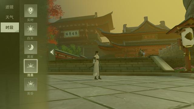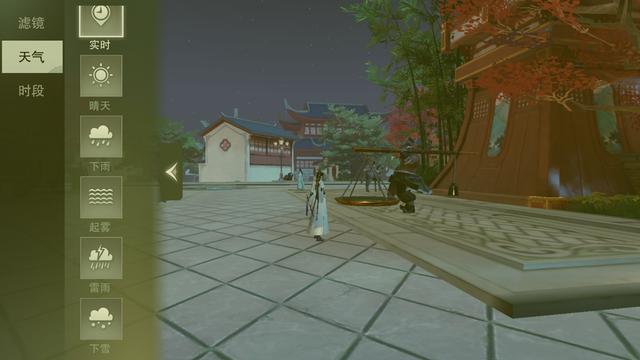 天气分了阴晴雨雪雾,时段分为黑白晨昏。也有过其他的类似体验,不过技术、模型的精致,似乎连带的这些体验也会更好。