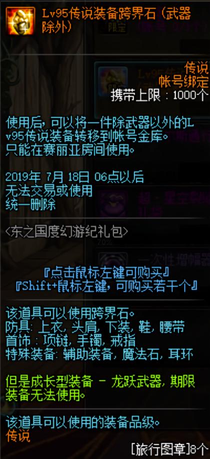 传说跨界石,兑换需要8个图章,每个账号可以兑换一次,这一个对于那些土豪急需快速毕业的玩家来说可能会考虑兑换一个。