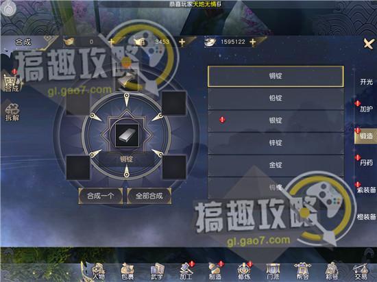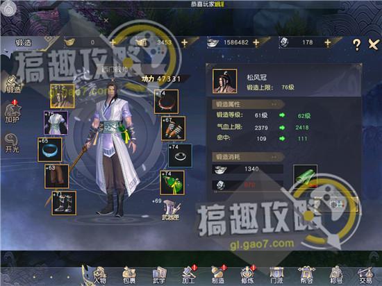 1.装备锻造,用玄石、银两以及锻造材料对装备进行锻造,来获得装备基础属性提升。