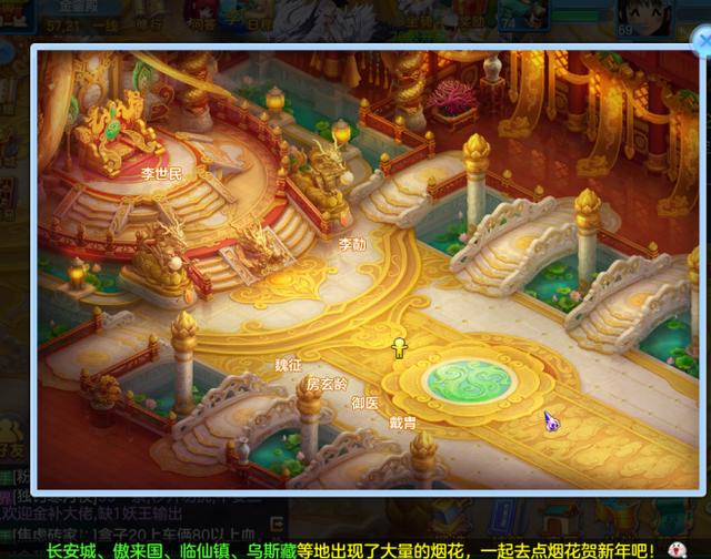金銮殿位于游戏中长安城最为繁华的地段,其中有包括皇帝李世民、魏征等多位NPC,此外,这里也是游戏中获得御前科举状元以及三界比武状元玩家进行形象展示的场所。这张地图总体上造型富丽堂皇,生动还原了盛唐年间的风貌,以游戏背景相得益彰,此外,地图的细节也值得考究,上线之后受到了很多玩家的喜爱。