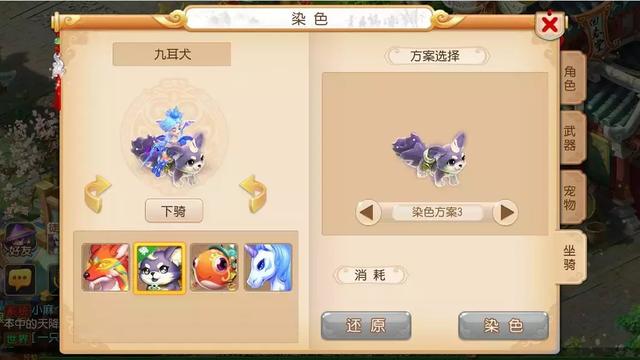 “其实这两只坐骑我都有,可我个人还是更喜欢哮天犬一些。正当点的理由就是:我比较喜欢这样炫酷一点的坐骑,那张牙舞爪的凶狠模样里还透露着一丝帅气......好吧,其实最主要的是因为我虽然玩的是玄彩娥,但我内心里还是一个正直的男孩子,所以那么可爱的九耳犬完全不符合我的画风,就这样。”
