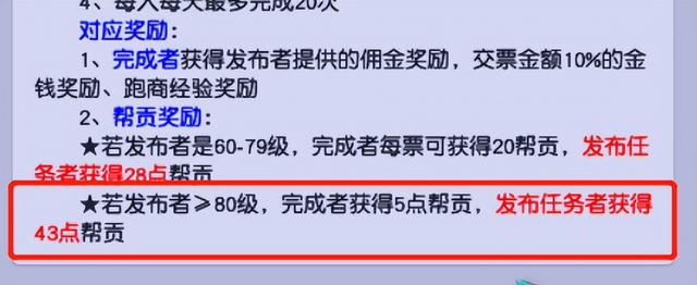 跑商的意义,一个是保障帮派刷资材,另一个绝对是所有获得帮贡中性价比最高的。