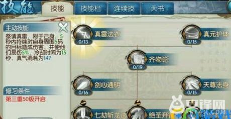 五气朝元:被动,增加真气上限。追求道法的提升可以点这个技能。如果有多余的点数可以点。