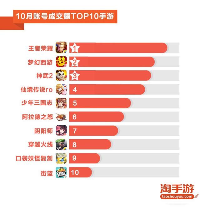 10月手游交易额排行榜,榜首依然为《王者荣耀》,且相比上个月交易额增长了15%。