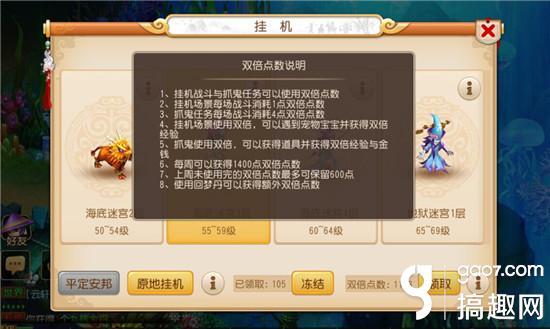 1、挂机战斗与抓鬼任务可以使用双倍点数