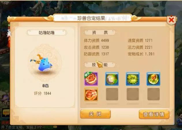 这次的结果有点令人悲伤,重新合出来的咕噜咕噜只有5个技能,评分只有1844,显然没有达到这位玩家的预期嘛。不行,重置一波属性咱们继续刚!