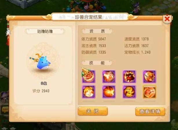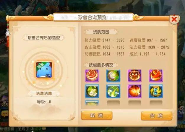其实灵儿觉得这波操作不算亏,但是这位玩家显然是精益求精的典范。只见他立刻掏出来10个资质丹给咕噜咕噜提升了资质,然后继续合!