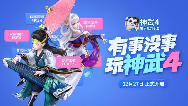 年度最受期待的社交手游,经典社交游戏大IP的最新力作——《神武4》手游。在众多社交游戏玩家的翘首以盼下,终于"千呼万唤始出来"!《神武4手游》于12月27日正式开启全平台公测,对于广大社交休闲游戏玩家来说,这无疑是年底收到的最好的一份礼物。
