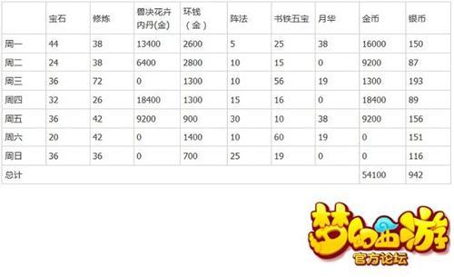 为了粗略计算一个玩家能够获得的资源,楼主决定用一星期的时间,计算各个日常活动所能够提供的资源,从而用数据给大家一个大概的思路。