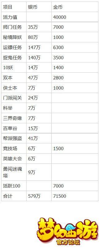 保守估计,80级以上的玩家收获最少为:200,000金币、50,000,000银币/月。