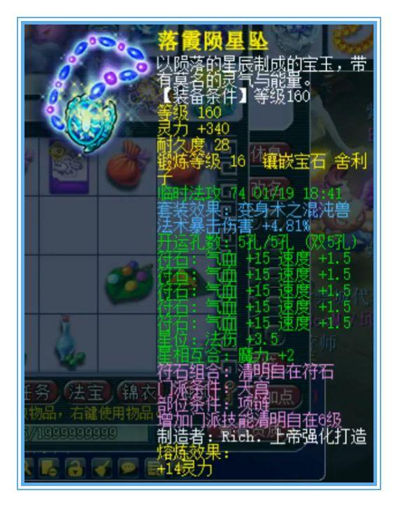法制任务精神乐队有什么特点?项链是法制的灵魂。也许拥有一条高灵项链是每个法系的梦想。这条160分的项链只能说是精益求精。貌似340点灵力一见如故。16段舍利之后,可能会讲到。初始的灵石和一些特殊的相比并不高,可能会昂着头,但是它4.81%的额外法术暴击伤害只能说一句话。