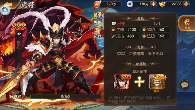 人中龙凤,骁勇善战冠九州;力战三英,方天画戟有威名。斩董卓,斗三英,先后击败刘备、公孙瓒、夏侯惇等赫赫有名武将,吕奉先更是有过一人同时力战六名武将的神级表现。如此强悍的实力,在游戏里更是被淋漓尽致的表现出来,其超强的攻击力与高暴击率,让他每次攻击都能造成巨额伤害。有这等神将在您军中,何愁战无不胜。