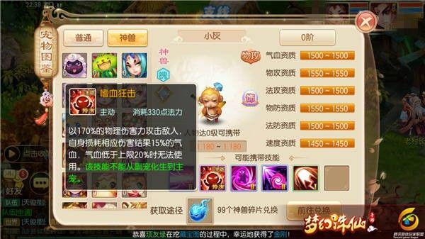 小灰是通过99个神兽碎片兑换的,神兽碎片在每天的活动都可以获得。所以小灰这个神兽是比较好获得的。