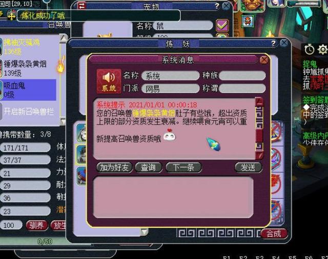 元旦过后梦幻中召唤兽可以使用的元宵数量就重置了,但是对于部分大佬来说他们对于梦幻的元旦却不是那么的期盼,因为他们的召唤兽过完元旦召唤兽的资质会被系统强制降低,需要继续使用元宵才能够将资质在补充上去,这是因为他们债藕换手的资质原本就已经达到了上限,他们召唤兽降低的那些资质是额外使用元宵又提升的,这部分资质每年都会折半,如果不继续充钱,召唤兽额外提升的资质会一直降低到零。