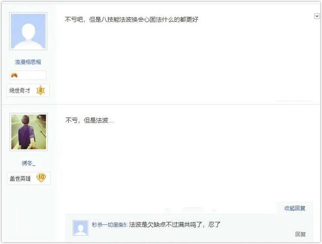 大部分网友给出的意见都是不亏,不过同时也认为这只御风童子并不算完美,因为高级法术波动这个技能所打出的伤害很不稳定,所以很多法宠都不会携带这个技能。听完了网友们的分析,这位玩家也开始纠结高级法术波动这个技能,对于法宠来说确实是一个影响伤害的因素,然而这只御风童子拥有内丹满共鸣的效果,到底要不要忍忍呢?
