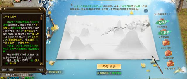 活动我就挑重点说一下,老玩家都知道怎么做,有这么几个要点:活跃必须够450,第一个和第二个活动需要450活跃才能做完,在线时长最少1小时,组队活动要6人组满,因为组满以后会多给一个材料,前边活动都是铺垫,为了得到【寒芳四宝】的活动材料,每5个材料绘画一次得到一个卷轴,开启卷轴就能得到最后我们换衣服的活动物品【盈香扇】了,每次开启卷轴给6个【盈香扇】。每天450活跃,跟着做完能得6个【寒芳四宝】(组队活动完美级会多给一个,不组满不一定能达到完美级)