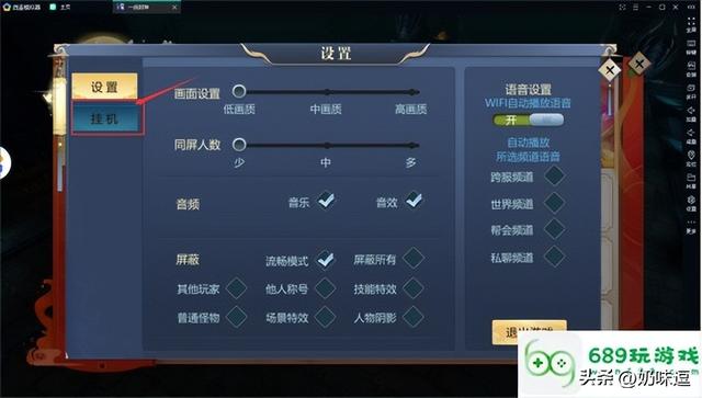 单击“继续”按钮,弹出设置菜单,选择右边这个“挂机”选项