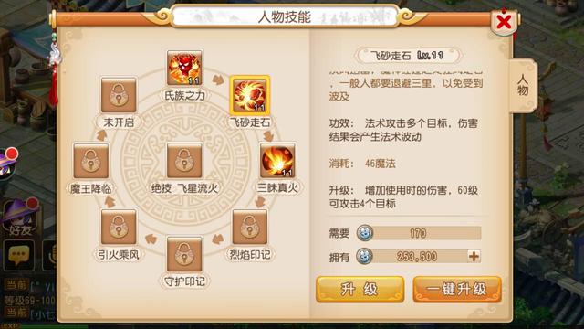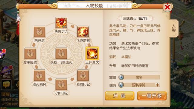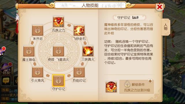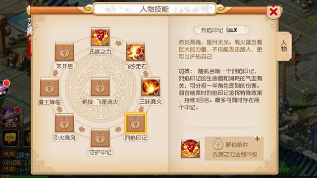 烈焰印记:使用后每回合结束时会随机对对面单位使用飞沙走石和三味真火技能。