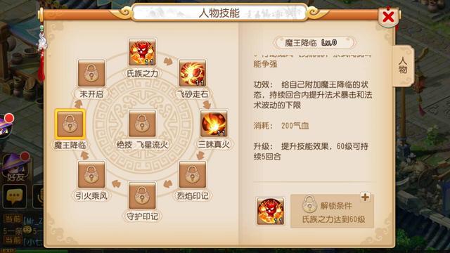 有些技能等级打不到看不出来图标,也可以从介绍里看出来,魔王的定位就是法术输出,门派介绍也有介绍,擅长暴击,召唤守护