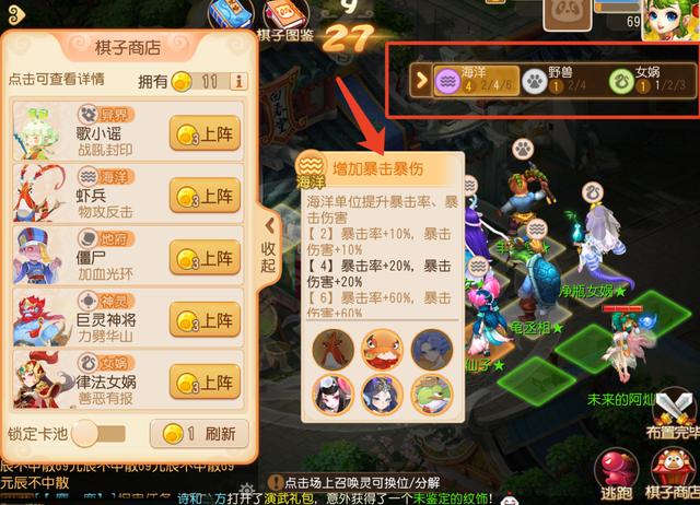 每轮将会自动刷新商店,少侠可以锁定商店,在下轮开始时不会自动进行刷新,当然也可以消耗1点召唤灵能量主动进行刷新