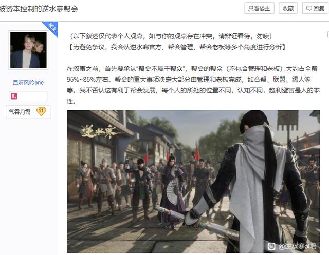 那么,你是怎么看待《逆水寒》中帮会逐渐资本控制化这件事的呢?说说你的想法吧。