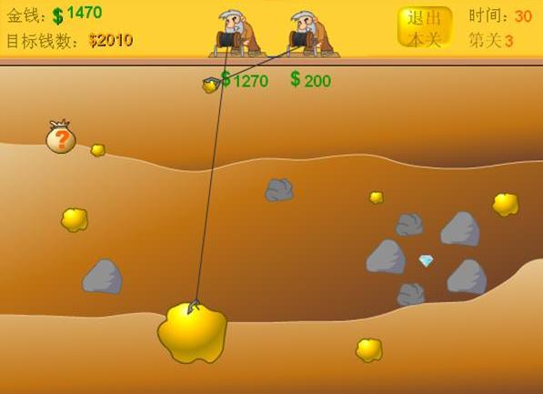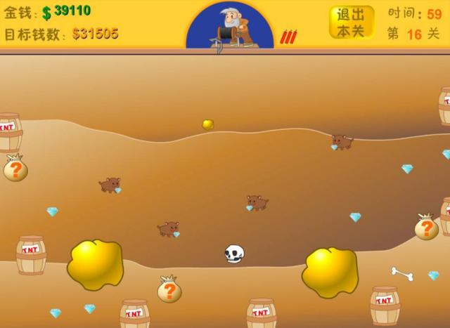 然而设计简单并不代表体验单调,虽然只需一根手指操作,但要在匀速摆动的勾爪中准确判定角度,成功避开岩石、炸药桶抓取金块可不是一件容易的事,更何况还有会手拿钻石但会左右移动的鼹鼠。