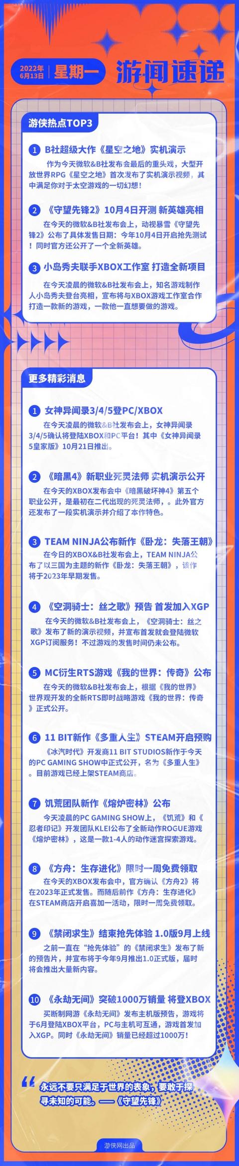 各位亲爱的游侠网朋友,早上好。大清早的美好时光,不如趁着上班时间摸个鱼,来《游侠早报》栏目看看今天凌晨Xbox与PC Gamer举办的线上发布会有哪些劲爆消息吧!