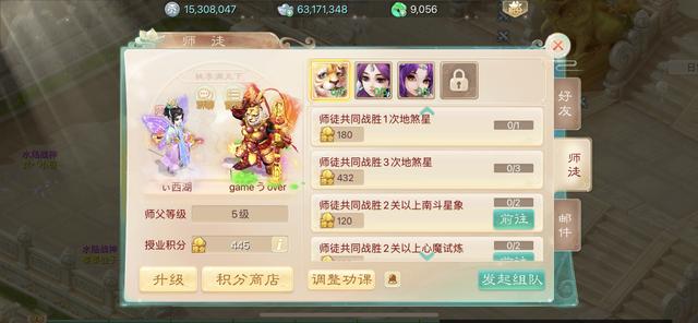 5.关于师徒积分和好心值。如果有小号的话,建议做师傅,带自己小号刷地煞星很容易满的,多余的师徒积分可以兑换五行大珠子。五行大珠子可以换成郭氏积分,在绝大多数服务器性价比最高。如果嫌练小号麻烦的话,找一个稳定布置任务的师傅,正好可以兑换100颗五行小珠子和大几百师门贡献,尤其适合男鬼、男人等不刻意追求单五行修炼的角色。好心值还是建议刷一刷,可以换一些师门或神兽丹。