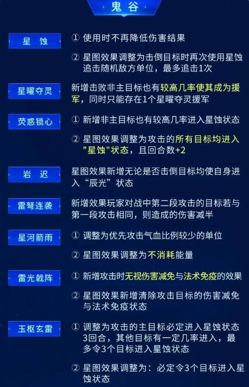 《神武4》这次门派技能改动,135和155技能增强了很多,150阶段的鬼谷变得十分强势,很适合双法阵容,很期待接下来鬼谷在服战的发挥。这波鬼谷多了这么多的群体禁疗,不知道能不能开发出辅助鬼谷变冰霜卡撒星蚀打特技的战术呢?
