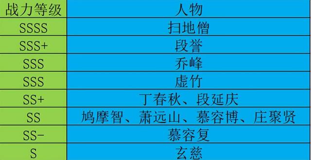 假设玄慈是S级,那么鸠摩智就应该是SS级(未出全力击败玄慈),那么虚竹就应该是SSS级(未出全力击败鸠摩智)。