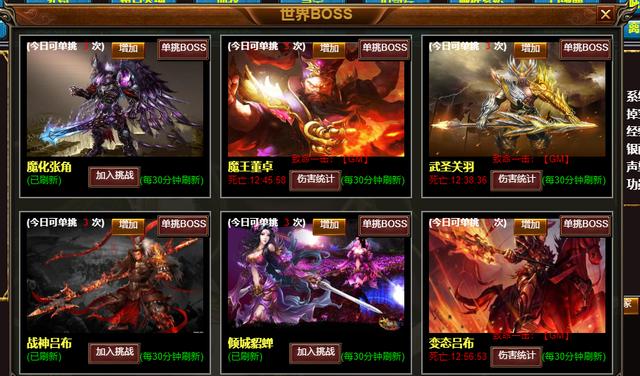世界BOSS 界面,掉落一些稀有物品,大量经验,功勋等,温馨提醒,BOSS很强大,弱小者勿入。