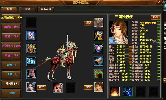 武将界面,主要详细展示了武将的各项属性,如武力,智力,等级,加点,防御等等,