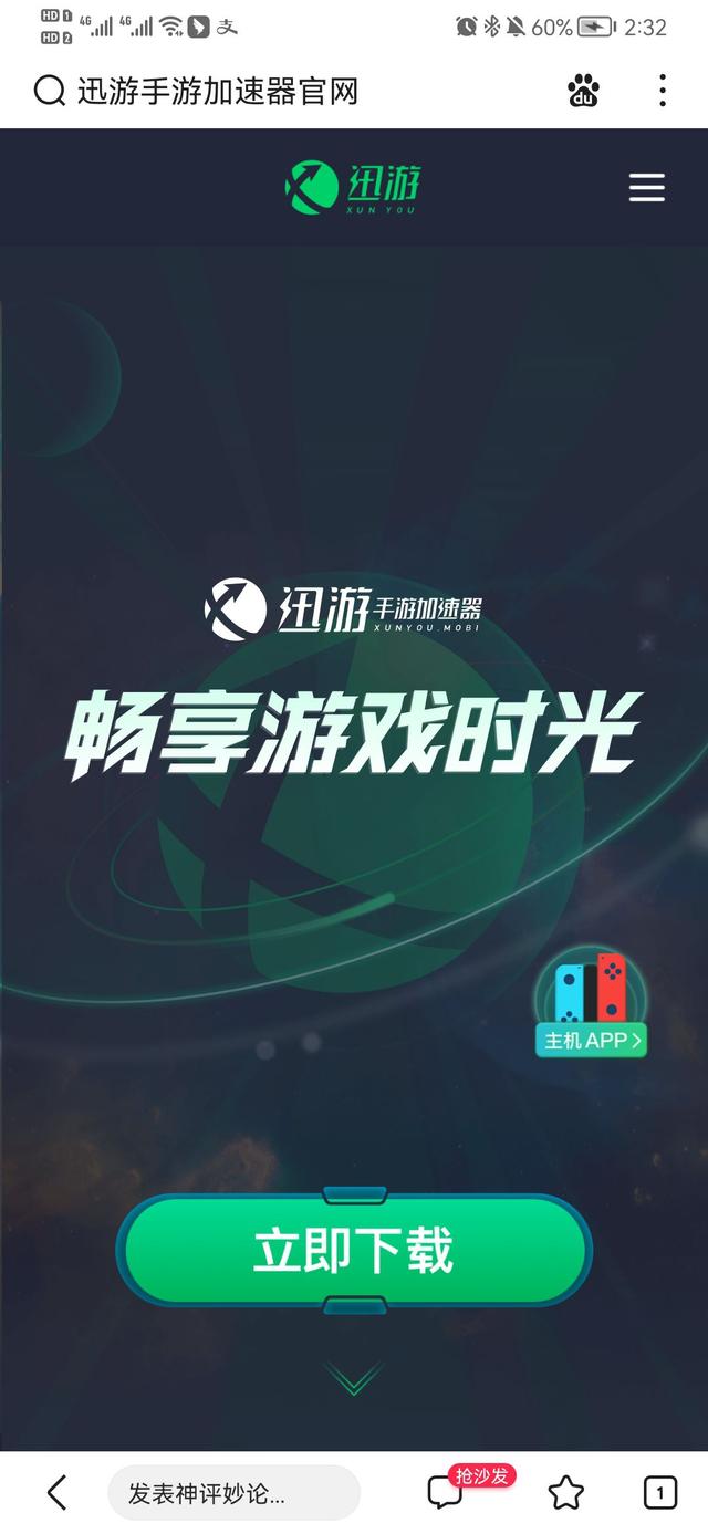 2.下载安装迅游手游加速器并注册账号,新用户可以白嫖3天加速,羊毛赶紧上车;注意下载过程中不要被手机应用商店拦截,拦截了就会导致下载功能失效。