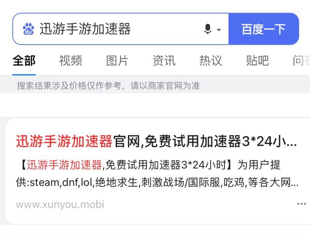 1.首先大家需要打开浏览器,百度搜索“迅游手游加速器”并进入官网;