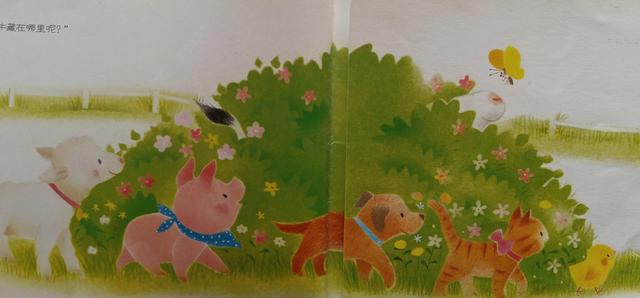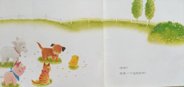 Five animals 五只小动物:There is one left. Look for it!还有一个小朋友藏着呢!找啊!