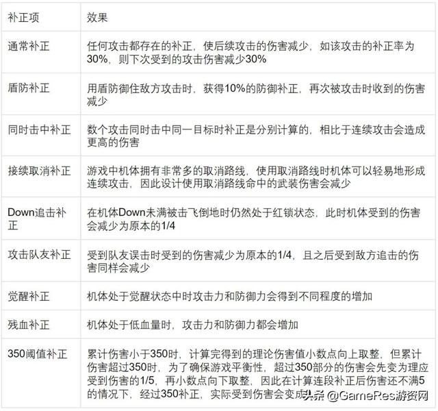 补正率:为各个武装设定的固定数值,武装命中对手时这项数值会不断累积计算,使给予对手的伤害慢慢下降,同样会清零。