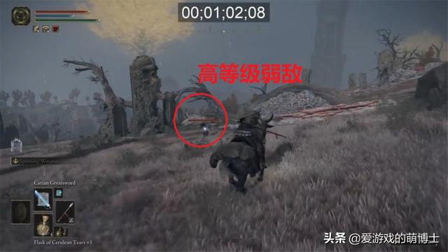 上述的技巧需要看角色的能力,其实还有一种不需要打怪的刷钱方法。依旧是“法姆大桥”,我们过桥后向南走可以到达“雷恩魔法师塔”赐福,上马向前方斜坡走,就可以触发铁球机关(地上有魔法阵)铁球下来以后会掉出地图外,神奇的事情发生了,这东西也会掉落2000卢恩!看来,系统判定这个铁球算是一个高级敌人,死亡后也会掉钱。