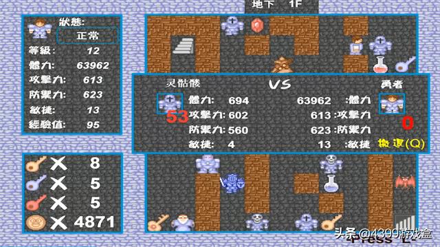 这一版《魔塔》比起之前任何版本的机制都要复杂,固定的伤害与防御机制被改成了不稳定数值,玩家和怪物都有可能打出暴击和MISS、中毒、虚弱。