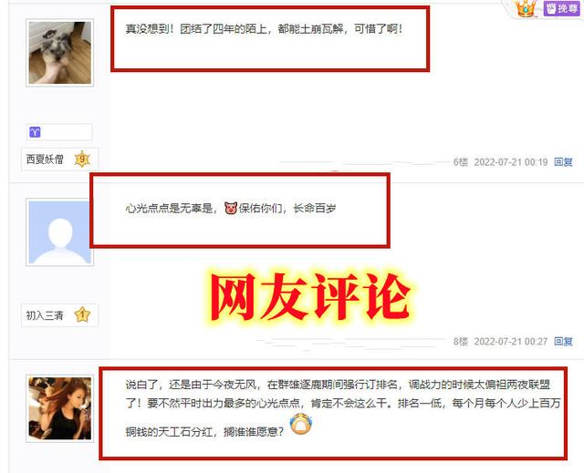 然而也有很多其他服务器的玩家认为,虽然今夜无风的管理模式,在前期的确能迅速凝聚起整个服务器的向心力,可是在群雄逐鹿跨服联赛每个月的天工石拍卖分红,都要切实关系到每一位玩家的情况下,他明显偏袒两夜联盟的人员调整,显然会让平时非常积极的心光点点成员心生不满,问鼎联盟的管理人员在这种情况下,只不过做了一手顺水推舟罢了。