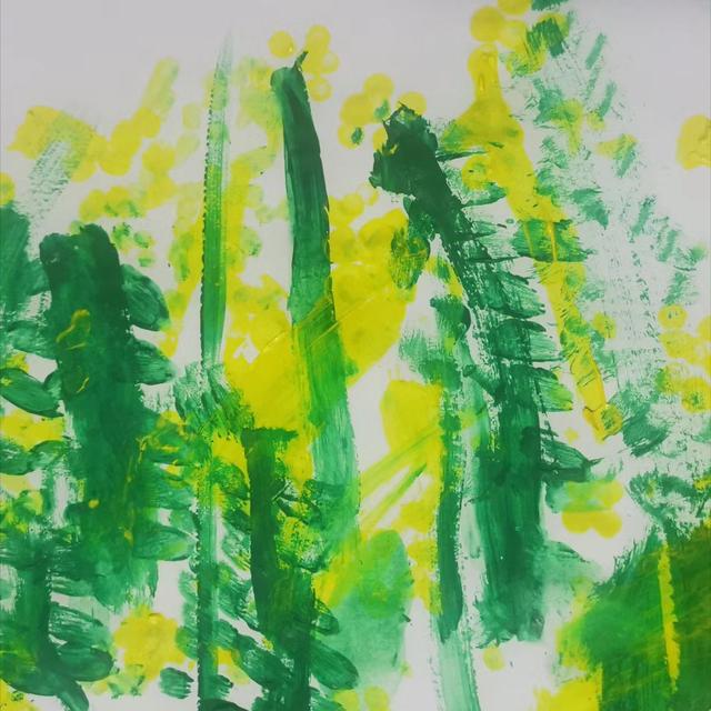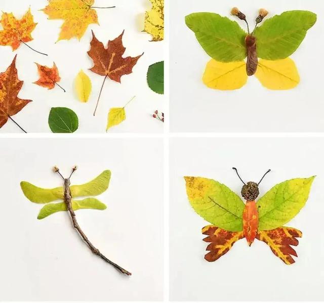 大自然的馈赠总是充满惊喜的,有红色的枫叶、黄色的梧桐叶、扇形的银杏叶,都非常适合粘贴画。像叶脉比较明显的树叶也能做拓印画。通过叶片的探索和观察能够让孩子感受大自然的美。