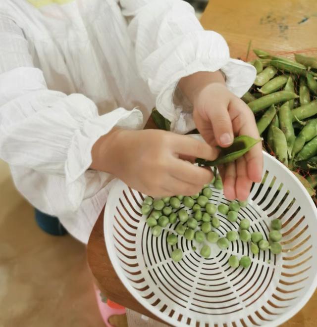 从宝宝很小的时候,我就喜欢装盘豆子和他们坐在一起剥豆子。刚开始宝宝是剥不开的,妈妈可以先剥开再让宝宝把豆子挑出来。这个过程无所谓他能剥多少,而是培养宝宝家务活的参与感,培养宝宝的家庭责任感。