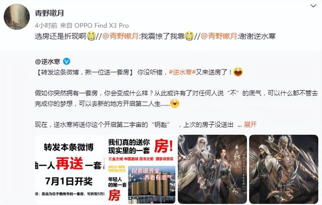 今日,逆水寒的这份超级大奖抽出来了,中奖的女玩家当场傻眼,不仅当场震惊在原地,还大喊“谢谢逆水寒”。不过对于究竟是拿下鹤岗一套房,还是折现成5万元现金,这位幸运玩家还没有拿定主意。