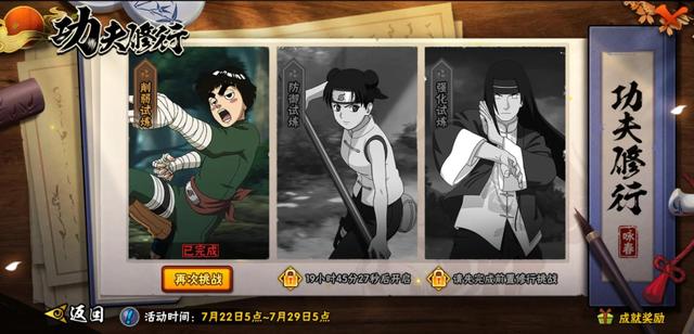 战力拉平(说明简单)的副本挑战玩法,挺好的可以使用自己的忍者,依次解锁挑战三名对手,通关完成成就获取奖励~